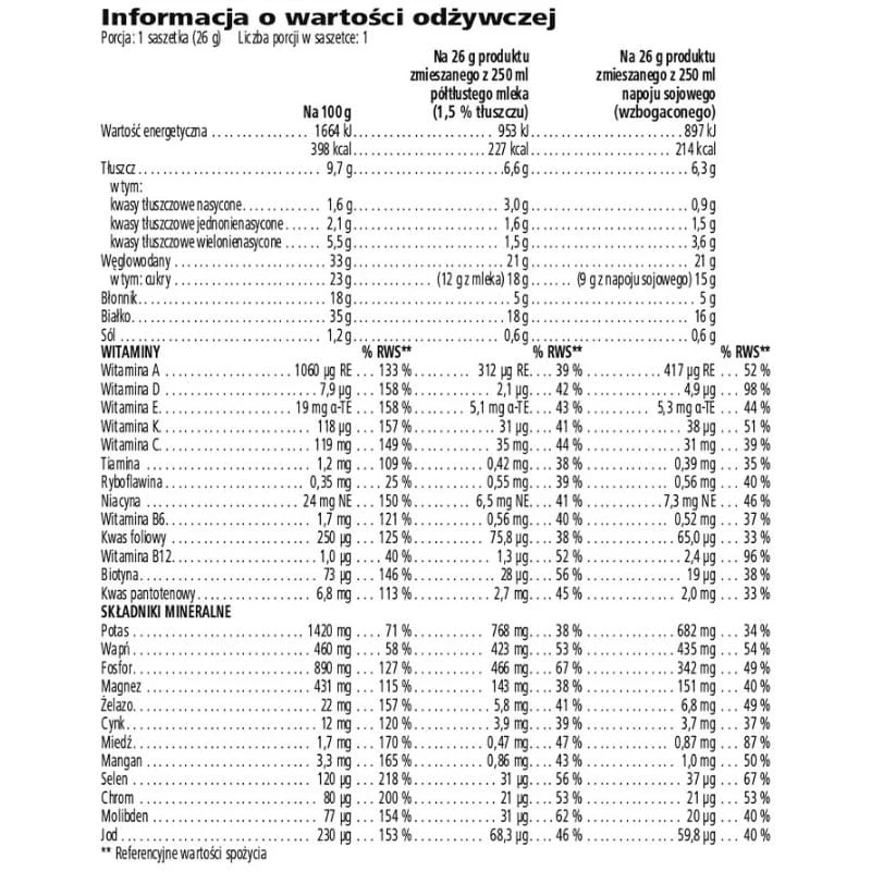 - Informacja dla alergików zawiera owies i soję