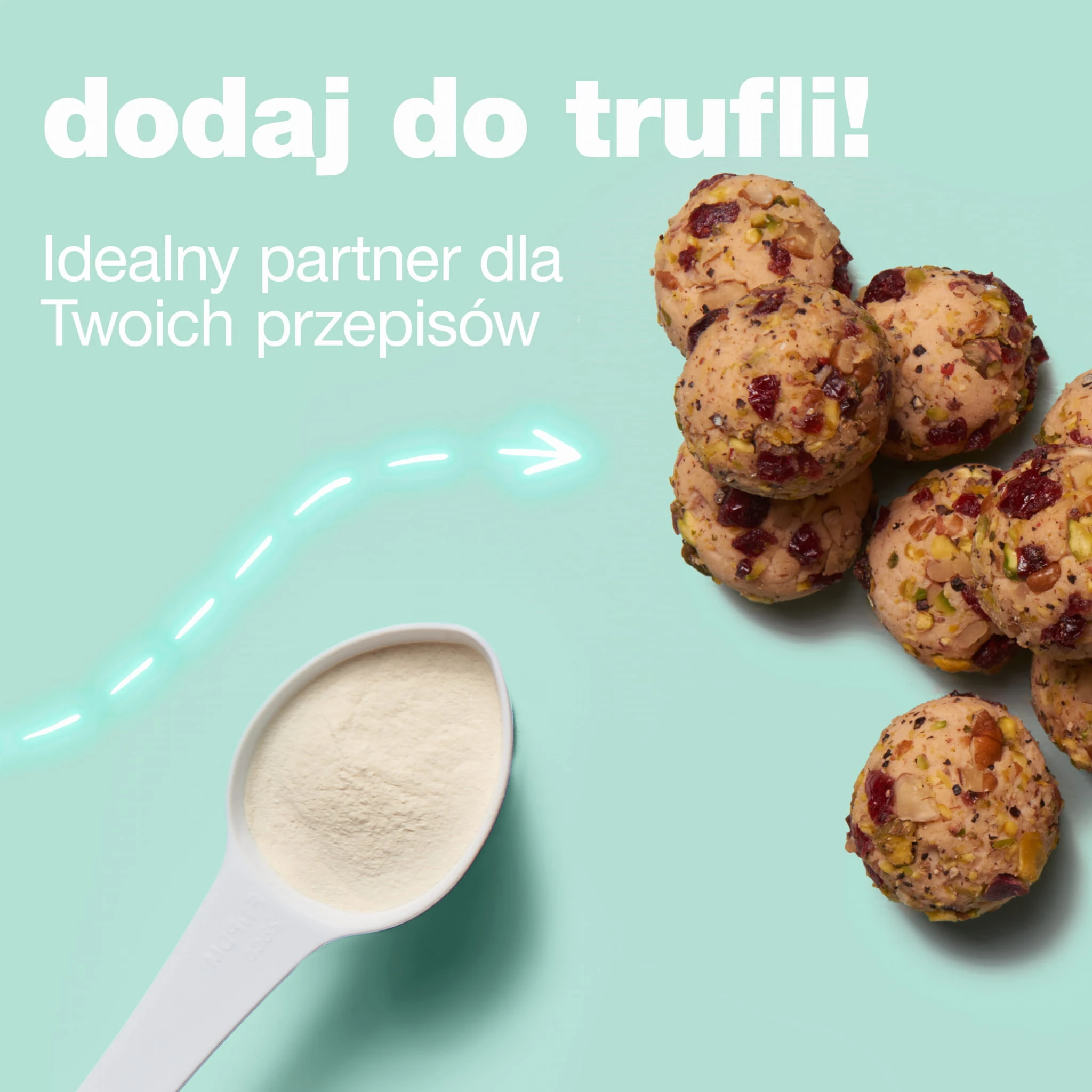 Lekka nuta waniliowa sprawia, że Protein Drink Mix Wegański świetnie współgra z dodatkami takimi jak świeże owoce, orzechy czy nasiona chia. Możesz go swobodnie dodawać do porannej owsianki, domowych smoothies czy fit-ciast, podnosząc ich wartość odżywczą przy każdym kęsie.