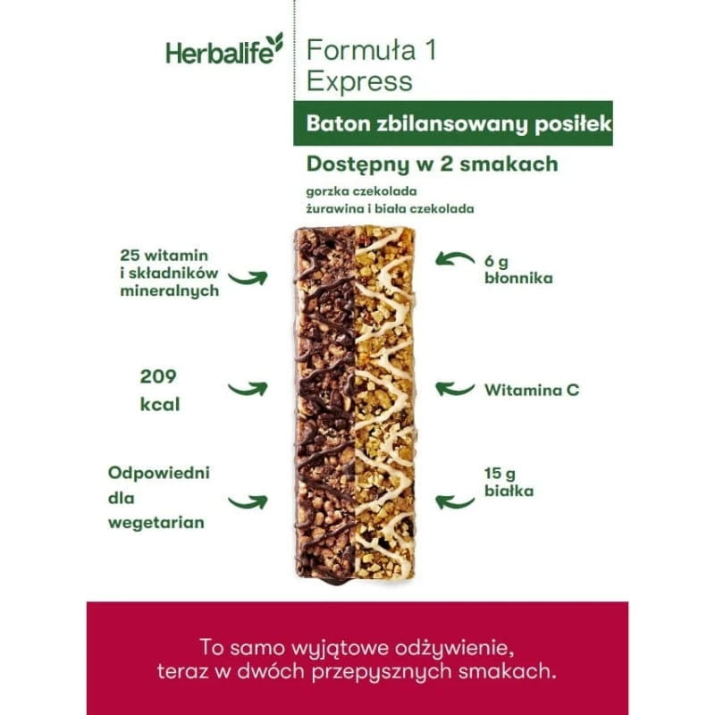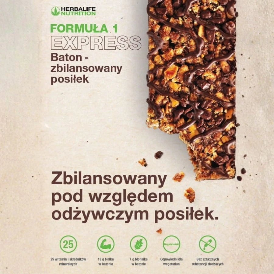 FAQ - Baton Herbalife Formuła 1 Express gorzka czekolada - 7 szt.