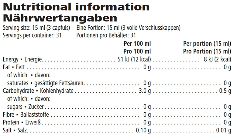 Przy zachowaniu standardowego dawkowania 15 ml (3 nakrętki) na porcję, jedno gigantyczne opakowanie wystarcza na przygotowanie aż 126 porcji pysznego napoju.
