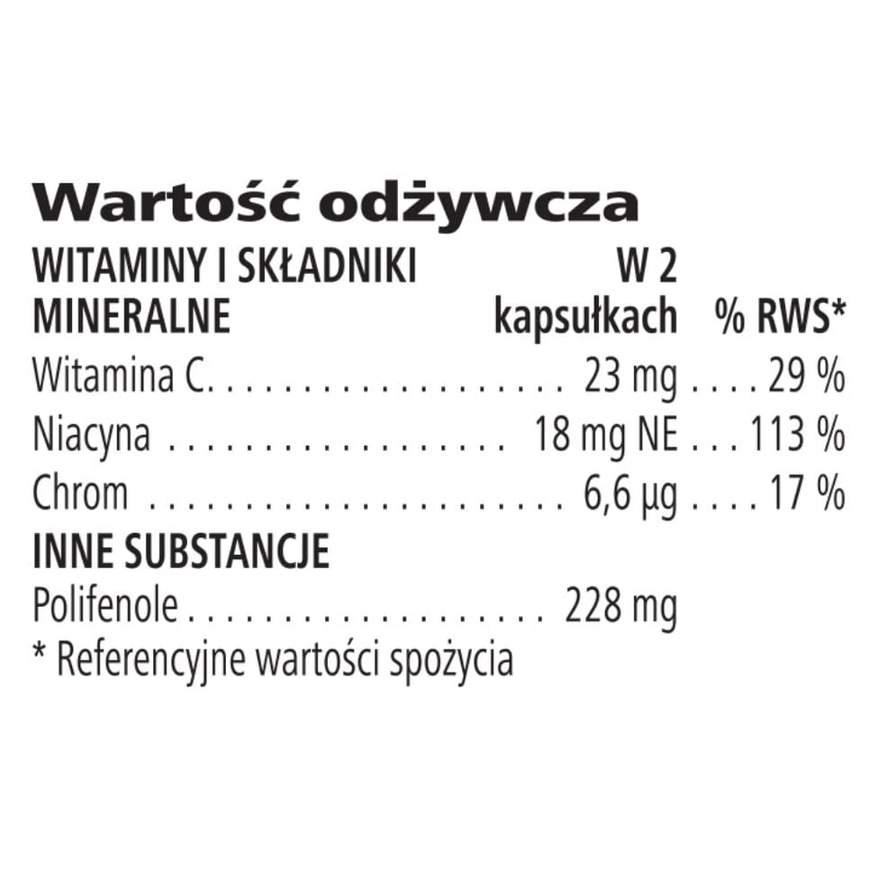 Dzięki zawartości chromu produkt pomaga utrzymać prawidłowy poziom glukozy we krwi, co ogranicza napady głodu i chęć na słodycze. Z kolei witamina C oraz ekstrakty roślinne wspierają metabolizm energetyczny i pomagają zmniejszyć uczucie zmęczenia podczas redukcji.